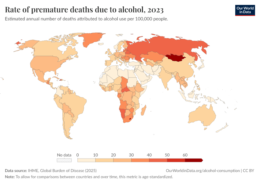Shown here is the rate of premature deaths caused by alcohol.