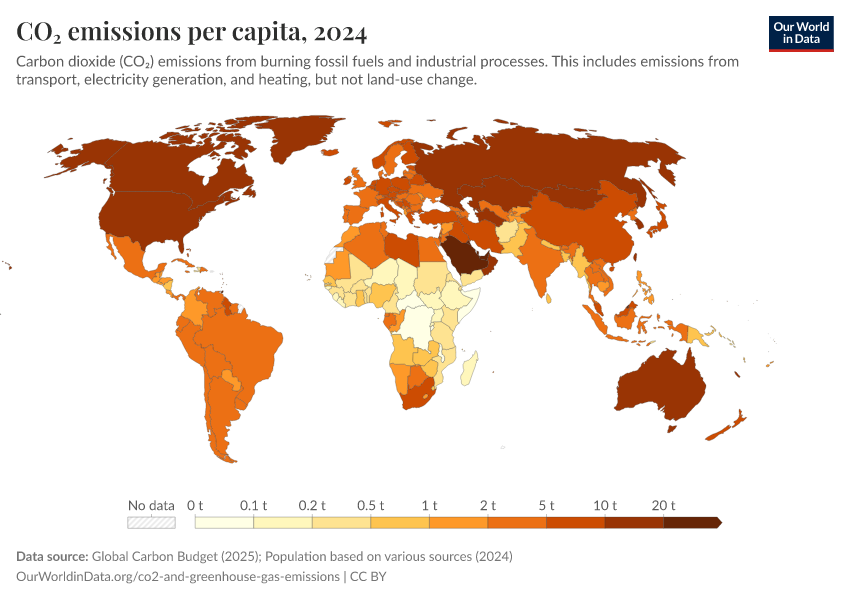 As you can see in the map, there are large inequalities in emissions per person worldwide.