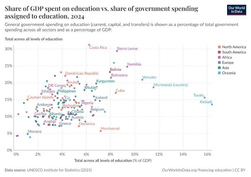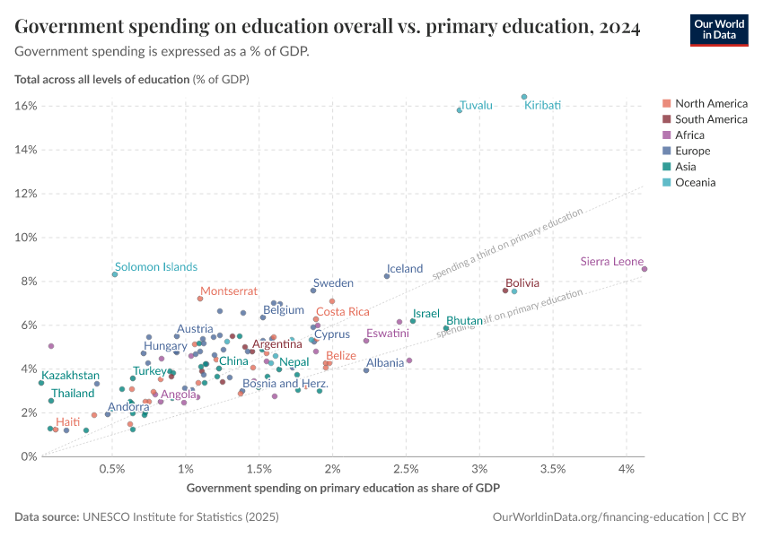 Max Roser and Esteban Ortiz-Ospina (2016) - “Education Spending” Published online at OurWorldinData.org. Retrieved from: 'https://index-dataset-dim.owid.pages.dev/financing-education' [Online Resource]BibTeX citation