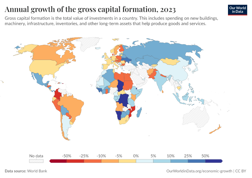 World Bank – processed by Our World in Data. “Annual growth of the gross capital formation” [dataset]. World Bank, “World Bank national accounts data, and OECD National Accounts data files.” [original data]. Retrieved February 13, 2026 from https://index-dataset-dim.owid.pages.dev/grapher/annual-growth-of-the-gross-capital-formation