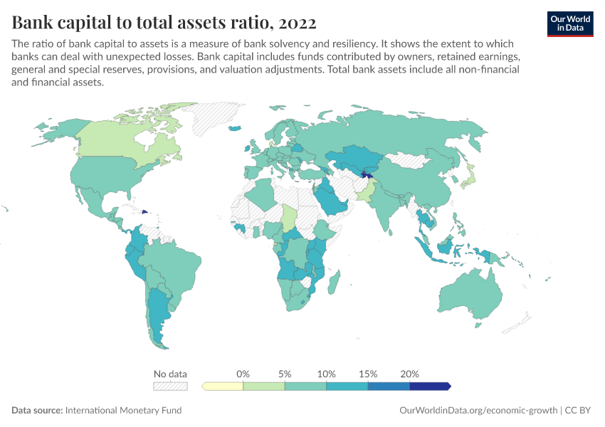 “Data Page: Bank capital to total assets ratio”. Our World in Data (2026). Data adapted from International Monetary Fund. Retrieved from https://index-dataset-dim.owid.pages.dev/grapher/bank-capital-to-total-assets-ratio [online resource]How to cite this data