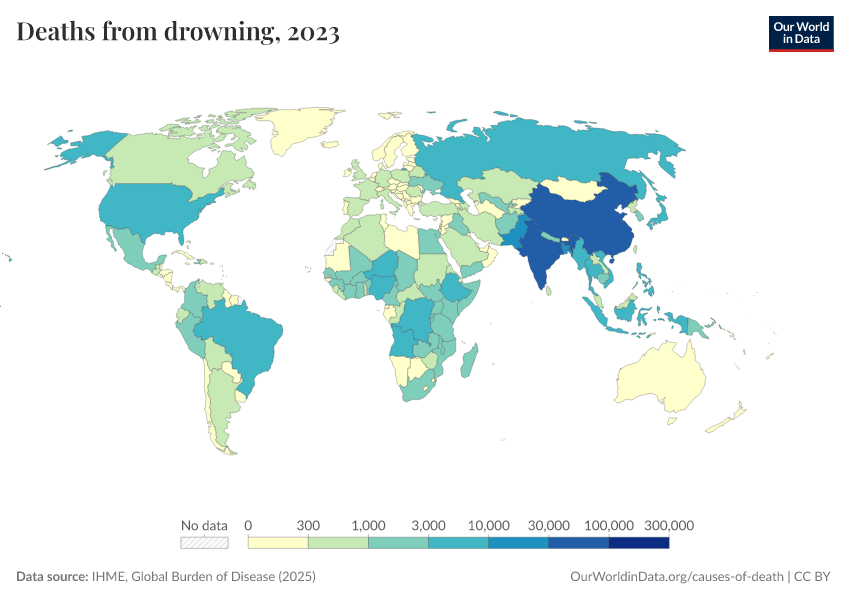 “Data Page: Deaths from drowning”, part of the following publication: Esteban Ortiz-Ospina and Max Roser (2016) - “Global Health”. Data adapted from IHME, Global Burden of Disease. Retrieved from https://index-dataset-dim.owid.pages.dev/grapher/deaths-from-drowning [online resource]How to cite this data