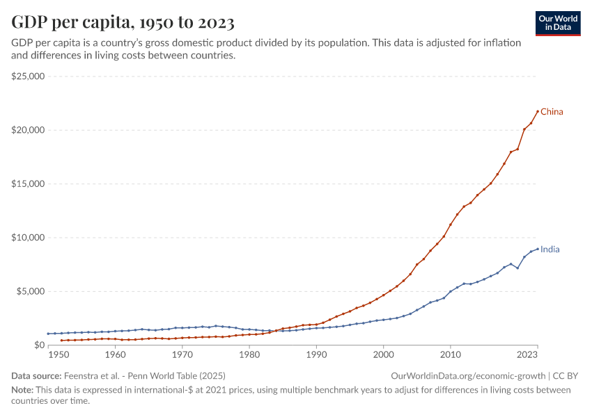 Feenstra et al. - Penn World Table (2025) – with major processing by Our World in Data. “GDP per capita – Penn World Table – In constant international-$” [dataset]. Feenstra et al., “Penn World Table 11.0” [original data]. Retrieved February 13, 2026 from https://index-dataset-dim.owid.pages.dev/grapher/gdp-per-capita-penn-world-table