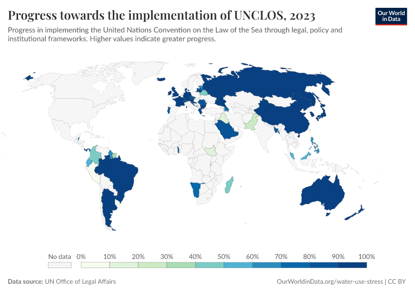 “Data Page: Progress towards the implementation of UNCLOS”. Our World in Data (2026). Data adapted from UN Office of Legal Affairs. Retrieved from https://index-dataset-dim.owid.pages.dev/grapher/implementation-of-unclos [online resource]How to cite this data