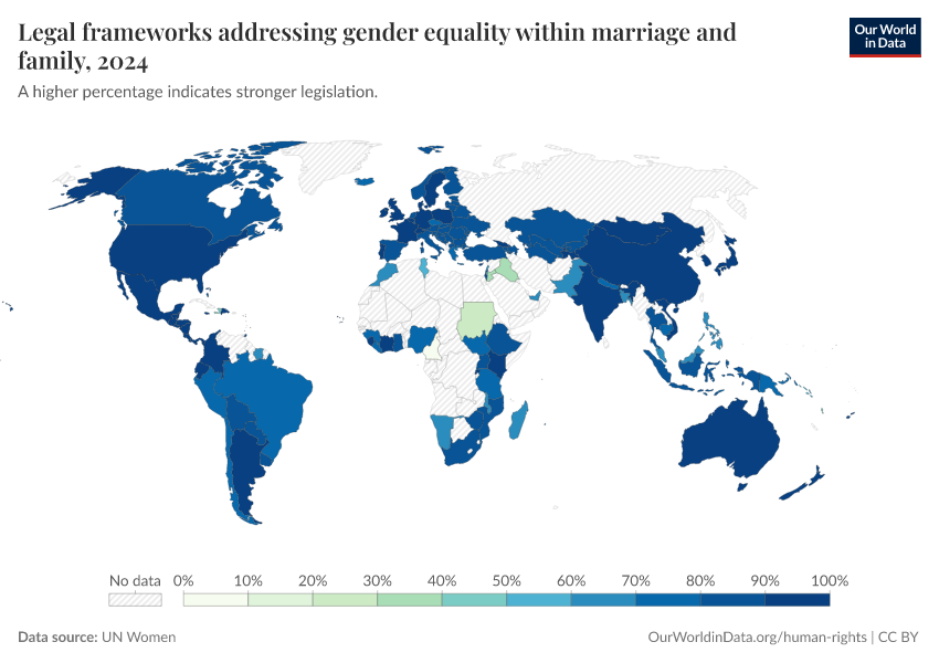 “Data Page: Legal frameworks addressing gender equality within marriage and family”. Our World in Data (2026). Data adapted from UN Women. Retrieved from https://index-dataset-dim.owid.pages.dev/grapher/legal-frameworks-gender-equality-within-marriage-and-family [online resource]How to cite this data