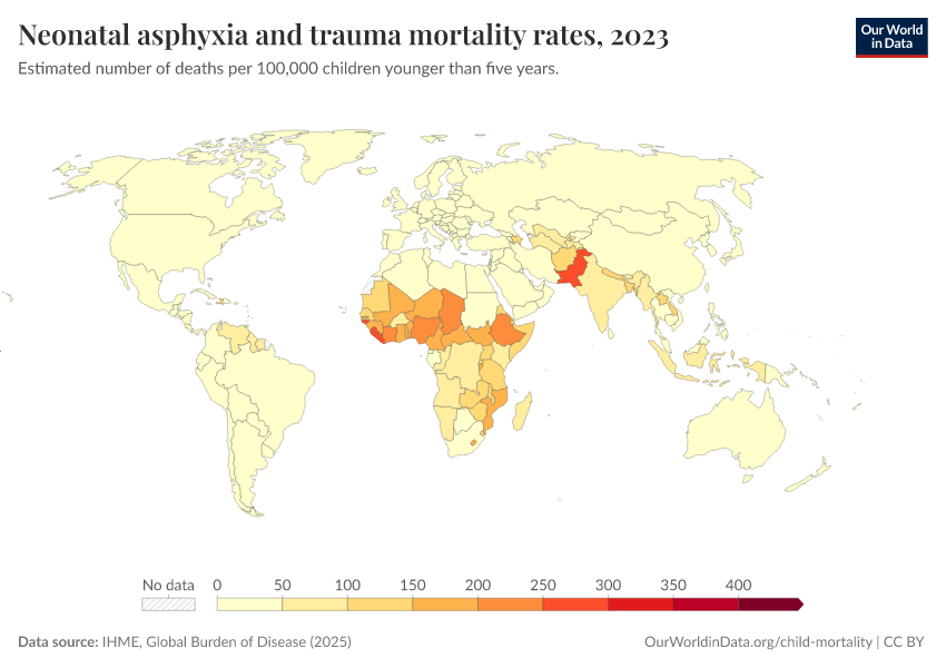 IHME, Global Burden of Disease (2024) – with minor processing by Our World in Data. “Neonatal asphyxia and trauma mortality rates” [dataset]. IHME, Global Burden of Disease, “Global Burden of Disease - Deaths and DALYs” [original data]. Retrieved February 13, 2026 from https://index-dataset-dim.owid.pages.dev/grapher/mortality-neonatal-asphyxia-and-trauma