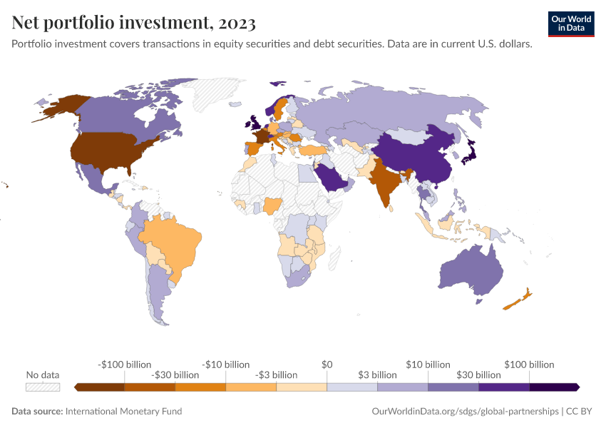 International Monetary Fund – processed by Our World in Data. “Net portfolio investment” [dataset]. International Monetary Fund, “International Monetary Fund, Balance of Payments Statistics Yearbook and data files.” [original data]. Retrieved February 13, 2026 from https://index-dataset-dim.owid.pages.dev/grapher/net-portfolio-investment