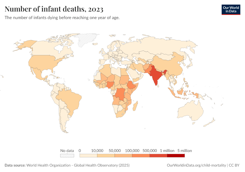 “Data Page: Number of infant deaths”. Our World in Data (2026). Data adapted from World Health Organization. Retrieved from https://index-dataset-dim.owid.pages.dev/grapher/number-of-infant-deaths-gho [online resource]How to cite this data