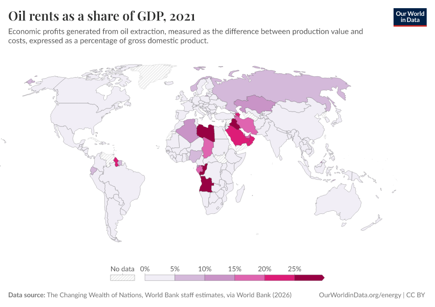 “Data Page: Oil rents as a share of GDP”. Our World in Data (2026). Data adapted from The Changing Wealth of Nations, World Bank staff estimates, via World Bank. Retrieved from https://index-dataset-dim.owid.pages.dev/grapher/oil-rents-as-a-share-of-gdp [online resource]How to cite this data