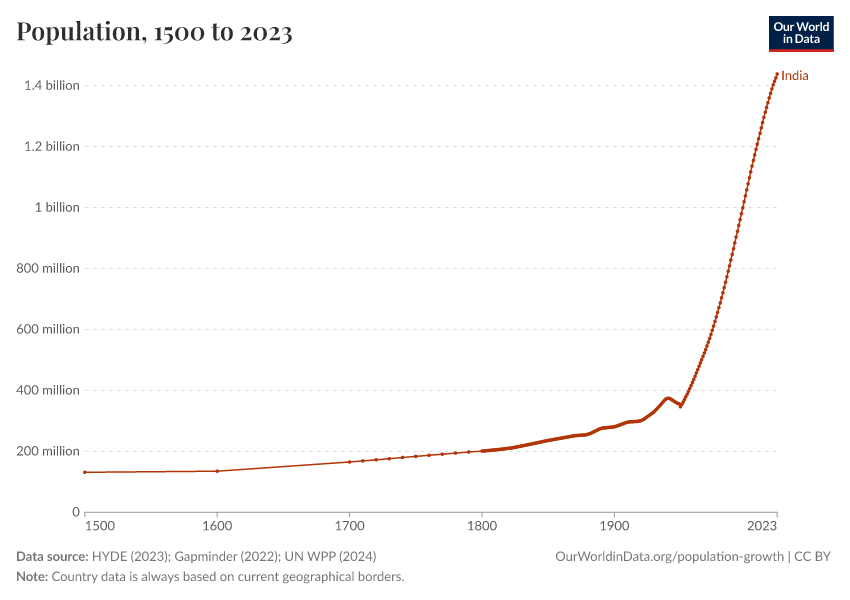 “Data Page: Population”, part of the following publication: Hannah Ritchie, Lucas Rodés-Guirao, Edouard Mathieu, Marcel Gerber, Esteban Ortiz-Ospina, Joe Hasell, and Max Roser (2023) - “Population Growth”. Data adapted from PBL Netherlands Environmental Assessment Agency, Gapminder, United Nations. Retrieved from https://index-dataset-dim.owid.pages.dev/grapher/population [online resource]