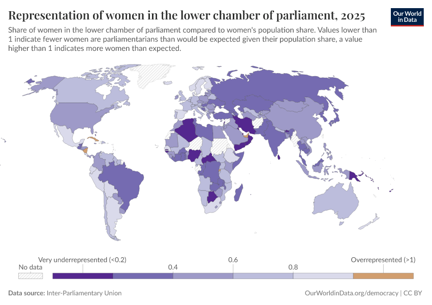 “Data Page: Representation of women in the lower chamber of parliament”. Our World in Data (2026). Data adapted from Inter-Parliamentary Union. Retrieved from https://index-dataset-dim.owid.pages.dev/grapher/representation-of-women-in-lower-chamber-of-parliament [online resource]How to cite this data