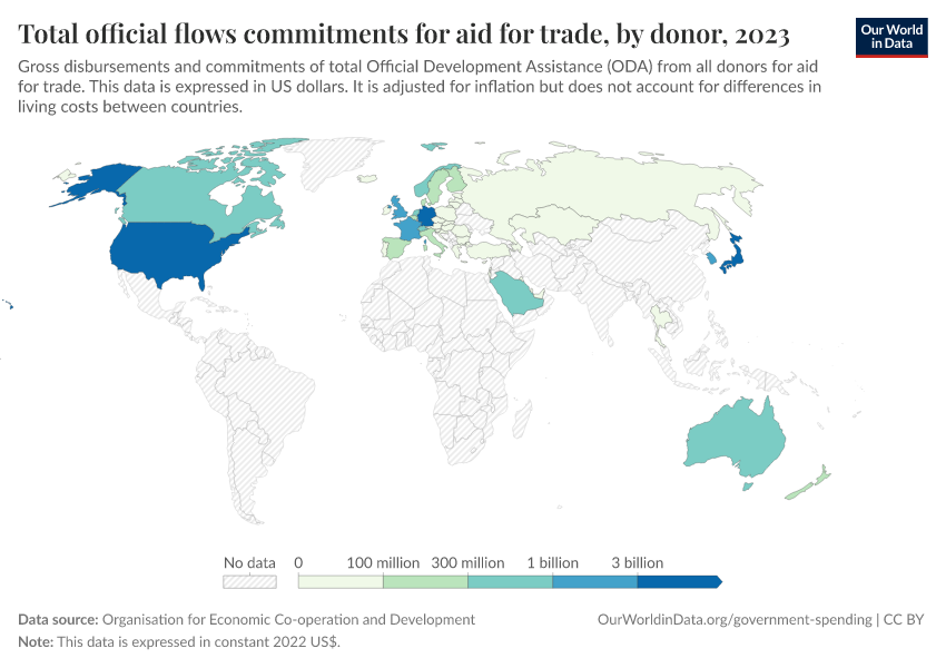 “Data Page: Total official flows commitments for aid for trade, by donor”. Our World in Data (2026). Data adapted from Organisation for Economic Co-operation and Development. Retrieved from https://index-dataset-dim.owid.pages.dev/grapher/total-oda-for-aid-for-trade-by-donor [online resource]How to cite this data