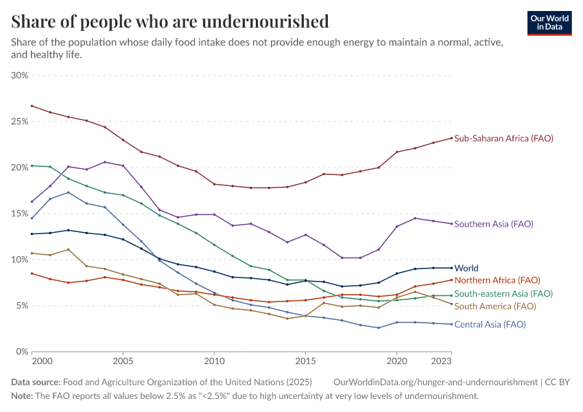 Hannah Ritchie, Pablo Rosado, and Max Roser (2023) - “Hunger and Undernourishment” Published online at OurWorldinData.org. Retrieved from: 'https://index-dataset-dim.owid.pages.dev/hunger-and-undernourishment' [Online Resource]BibTeX citation