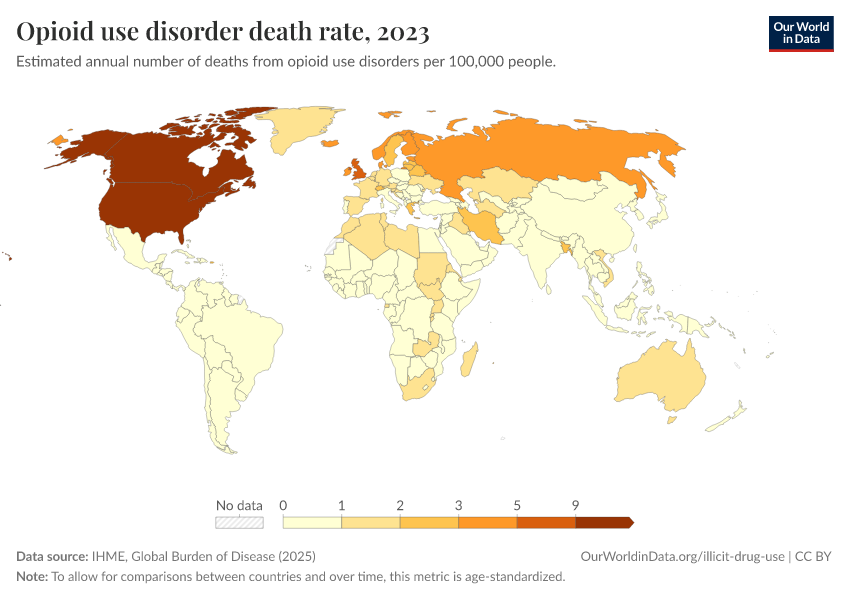 Hannah Ritchie, Pablo Arriagada, and Max Roser (2022) - “Opioids, Cocaine, Cannabis, and Other Illicit Drugs” Published online at OurWorldinData.org. Retrieved from: 'https://index-dataset-dim.owid.pages.dev/illicit-drug-use' [Online Resource]BibTeX citation