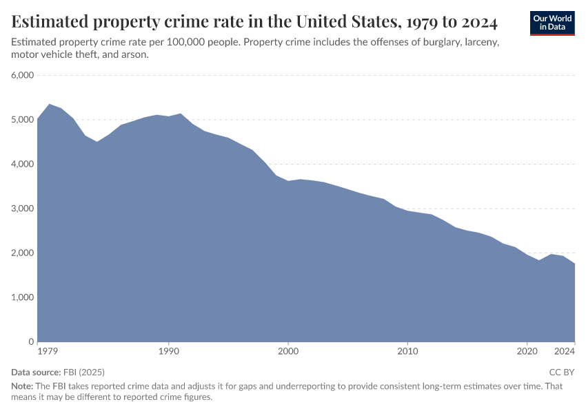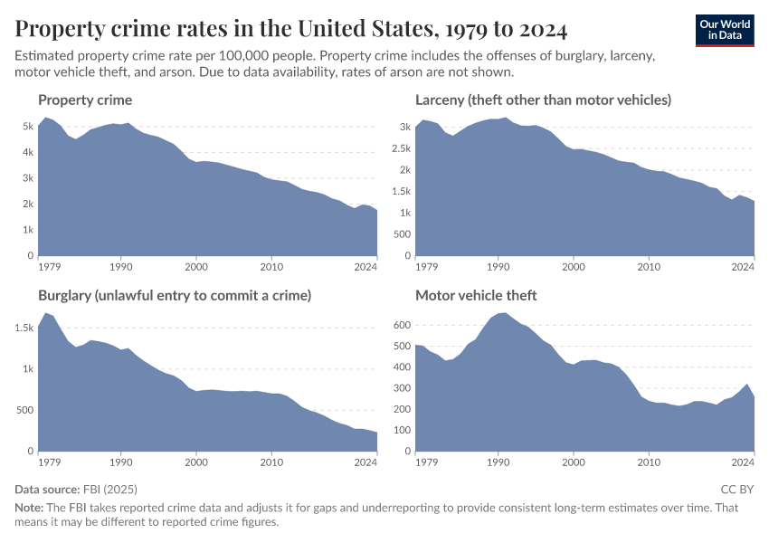 Hannah Ritchie and Fiona Spooner (2026) - “How have crime rates in the United States changed over the last 50 years?” Published online at OurWorldinData.org. Retrieved from: 'https://index-dataset-dim.owid.pages.dev/us-crime-rates' [Online Resource]BibTeX citation