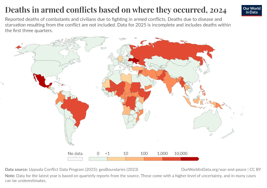 Bastian Herre, Lucas Rodés-Guirao, and Max Roser (2024) - “War and Peace” Published online at OurWorldinData.org. Retrieved from: 'https://index-dataset-dim.owid.pages.dev/war-and-peace' [Online Resource]BibTeX citation