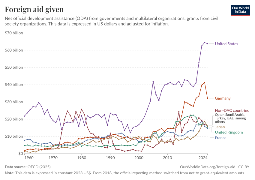 Simon van Teutem and Pablo Arriagada (2025) - “What is foreign aid? How “Official Development Assistance” is measured” Published online at OurWorldinData.org. Retrieved from: 'https://index-dataset-dim.owid.pages.dev/what-is-foreign-aid' [Online Resource]BibTeX citation