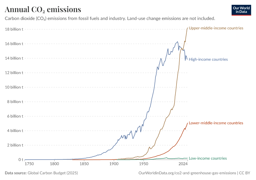 On Our World in Data, we use the World Bank’s income groups in many of our charts, for example, to compare trends across low- and high-income countries. In many charts, you will find an option to group countries by income level.